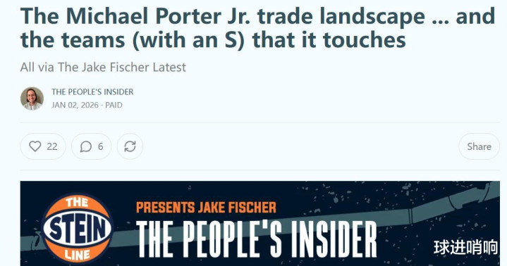 根据名记Jake Fischer报道,勇士、雄鹿和活塞等多支球队有意交易拿下小波特。
